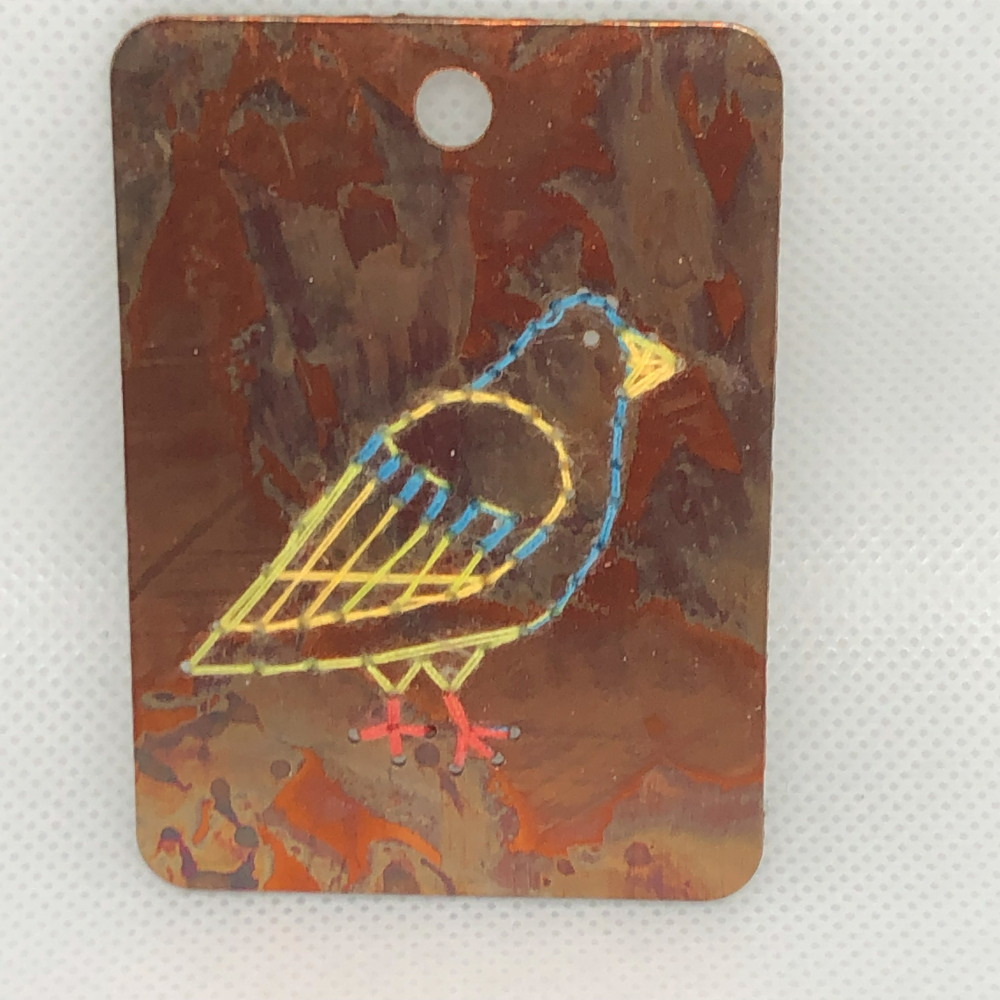 Small tile at 2 x 2.5 inches with a hole for hanging or stringing.