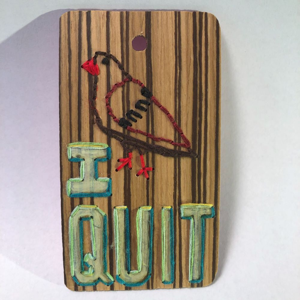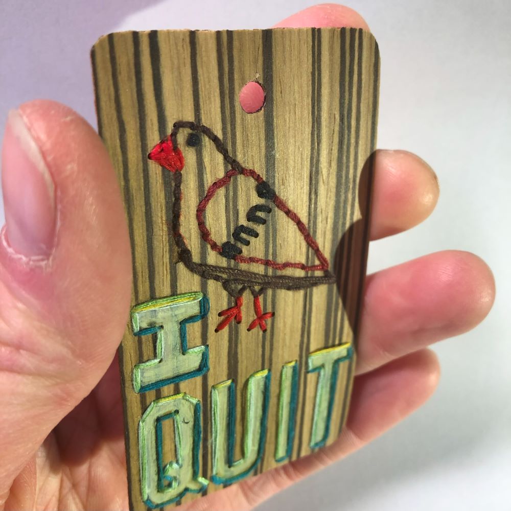 Expressive tile 2 x 3.5 inches with a hole for hanging or stringing.